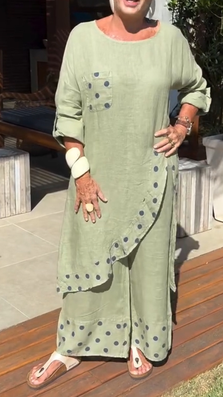 Women's Round Neck Irregular Splicing Top+pants Loose Casual Suit