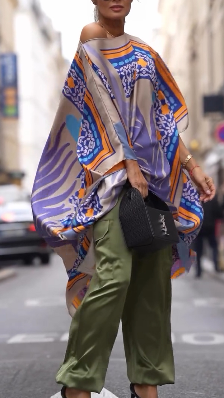 Women's Round Neck Printed Long Loose Casual Top