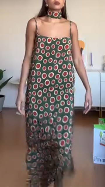 Women's Sling Polka Dot Slit Casual Dress