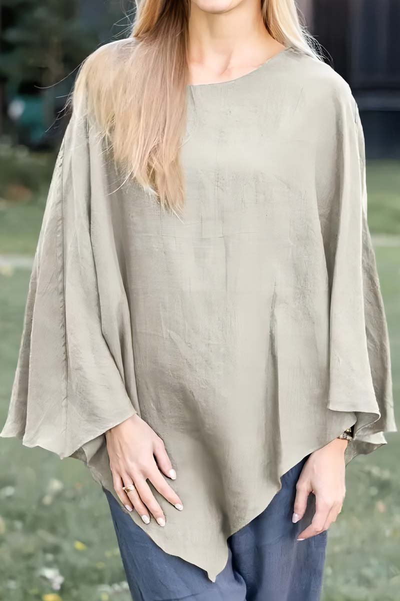 Women's solid color casual loose asymmetric cotton and linen top