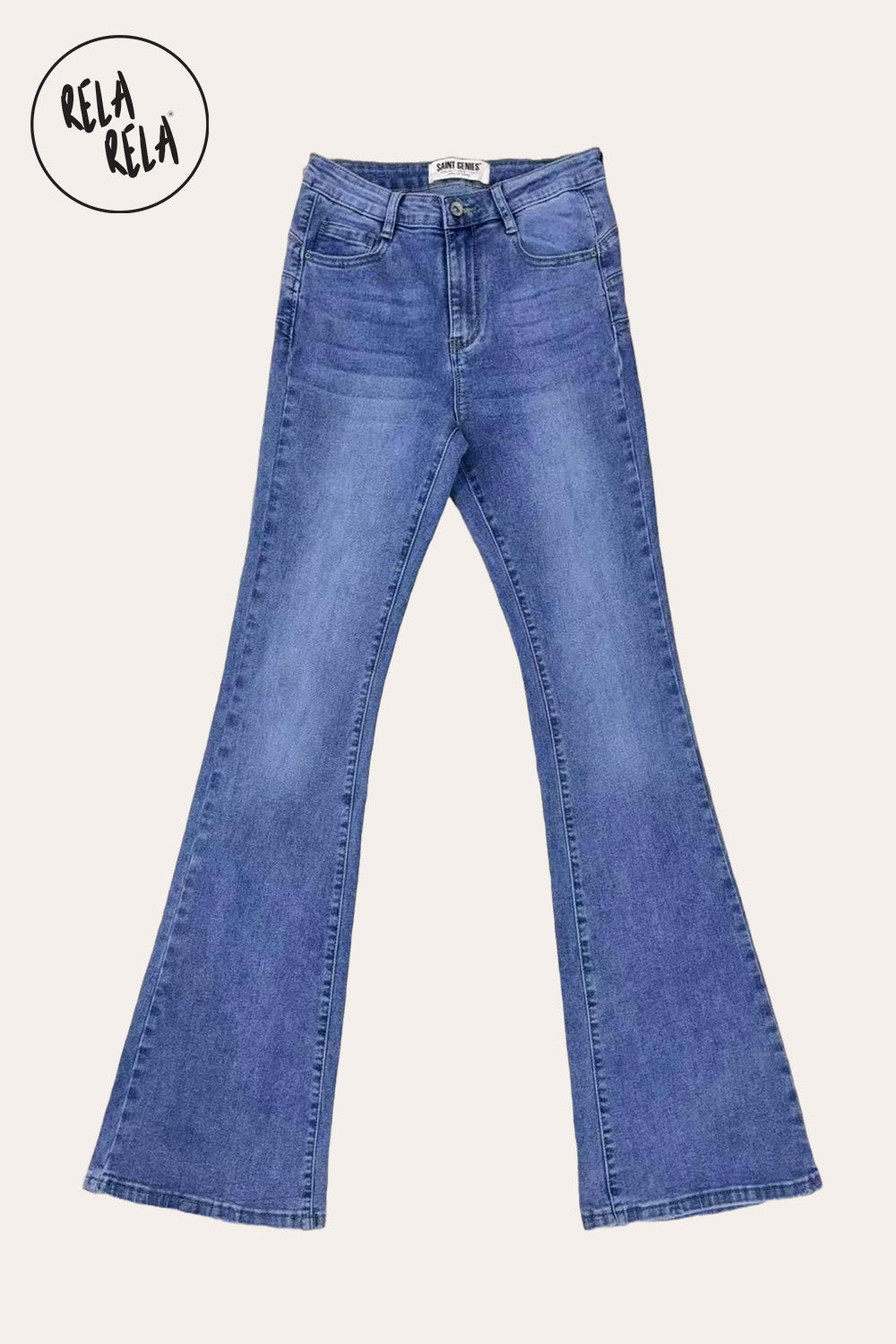 Women's Stretchy Push Up Flared Jeans in Mid Blue