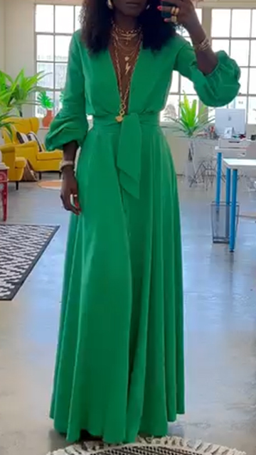 Women's V-neck Lantern Sleeves Lace-up Casual Wide-leg Jumpsuit