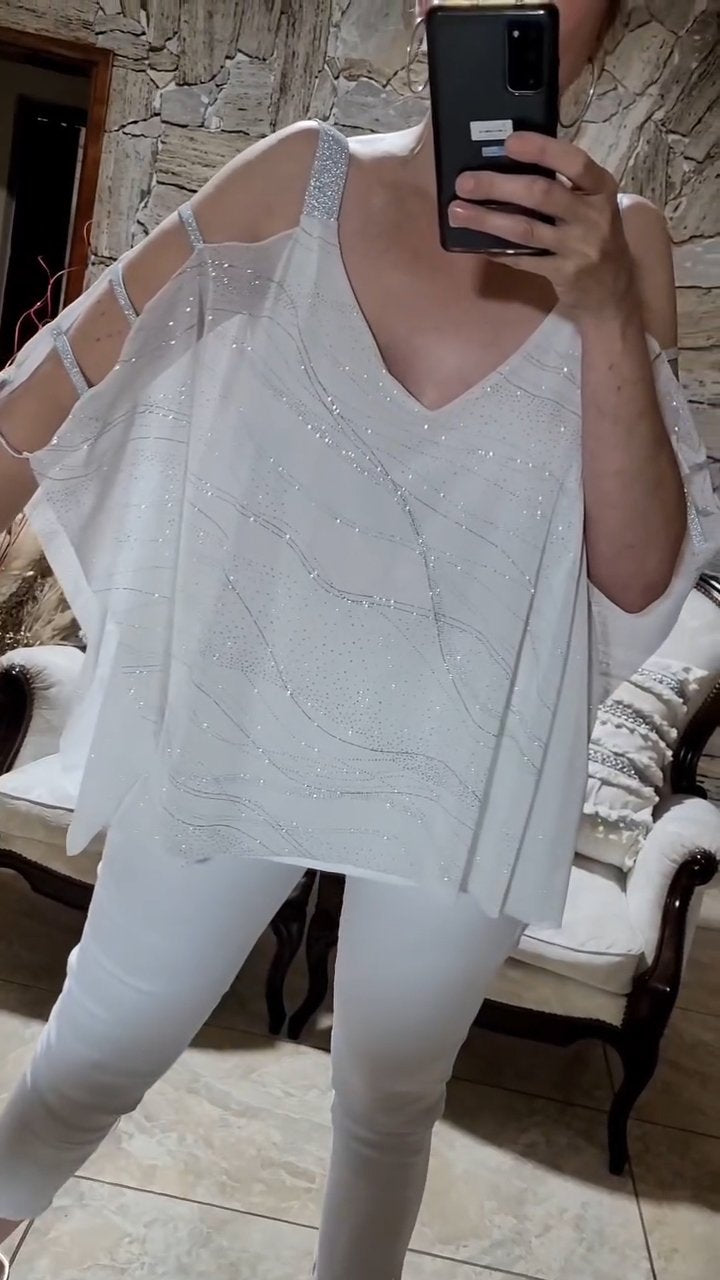 Women's V-neck Shiny Splicing Chiffon Top