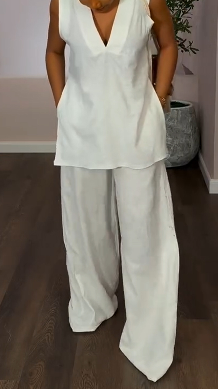 Women's V-neck Solid Color Loose Casual Suit