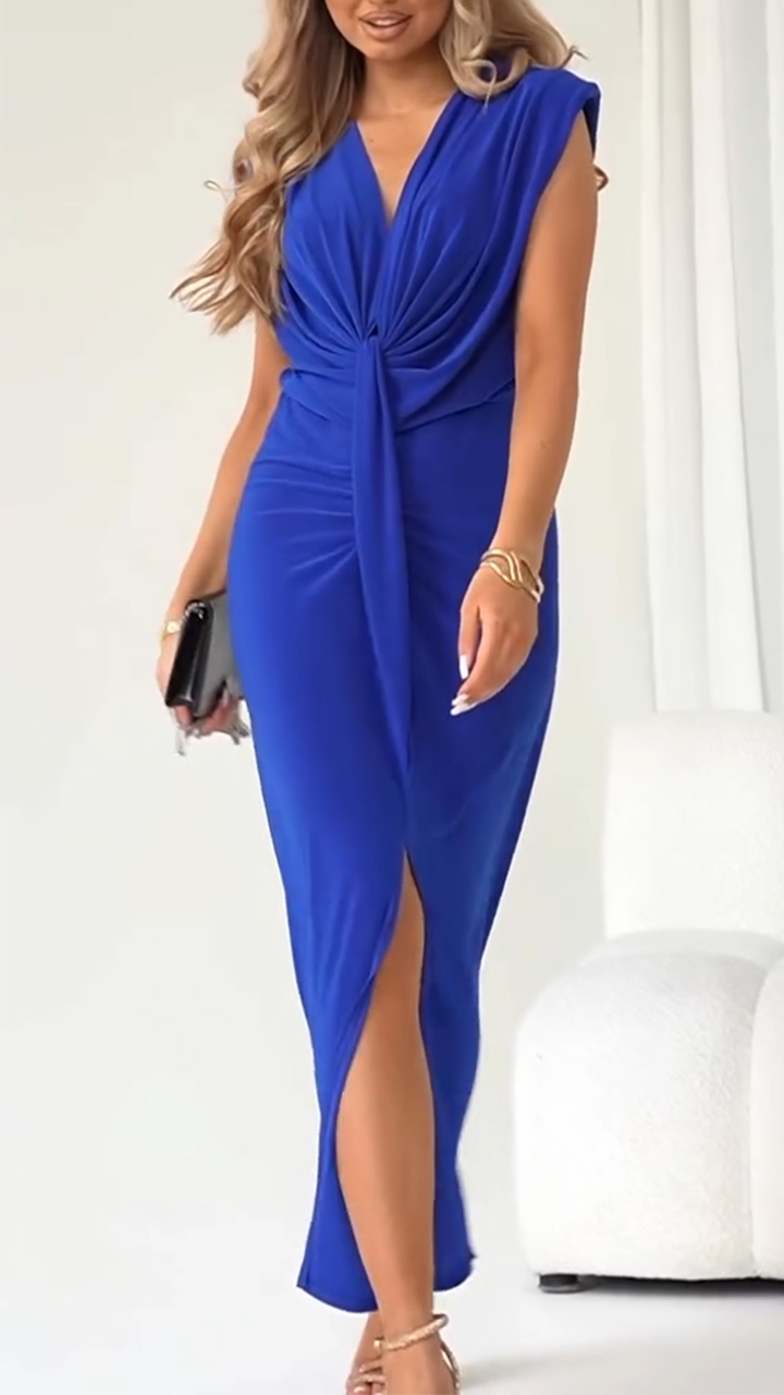 Women's V-neck Twisted Slit Pleated Temperament Dress
