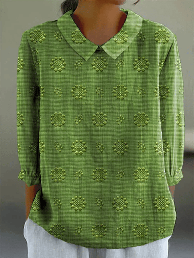 Women's Vintage Floral Art Print Casual Cotton And Linen 3/4 Sleeve Shirt